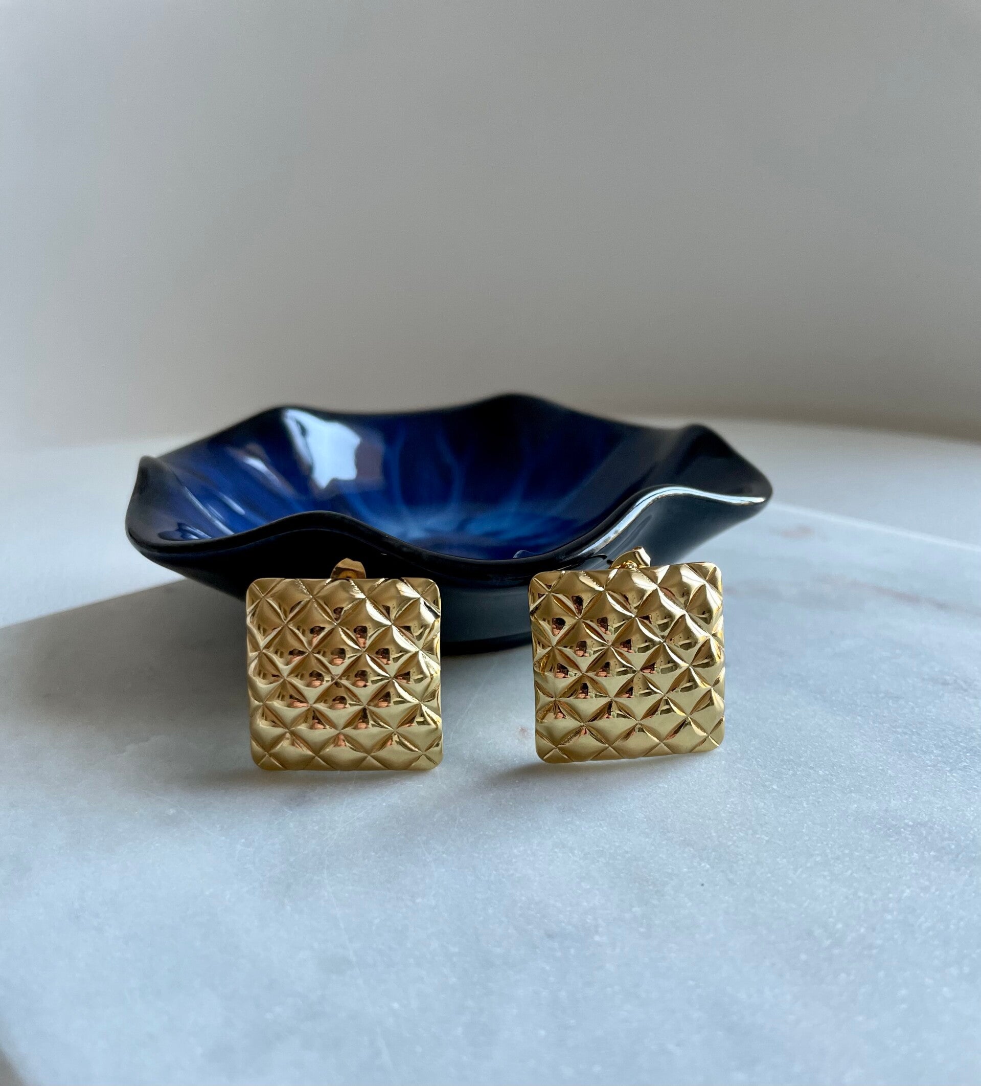 Apportez une touche d’élégance audacieuse à votre look avec ces boucles d’oreilles carrées en acier inoxydable doré. Leur finition brillante et leur motif texturé façon matelassé captent la lumière à merveille. Légères et confortables, elles sont parfaites pour sublimer vos tenues du quotidien comme vos looks de soirée.