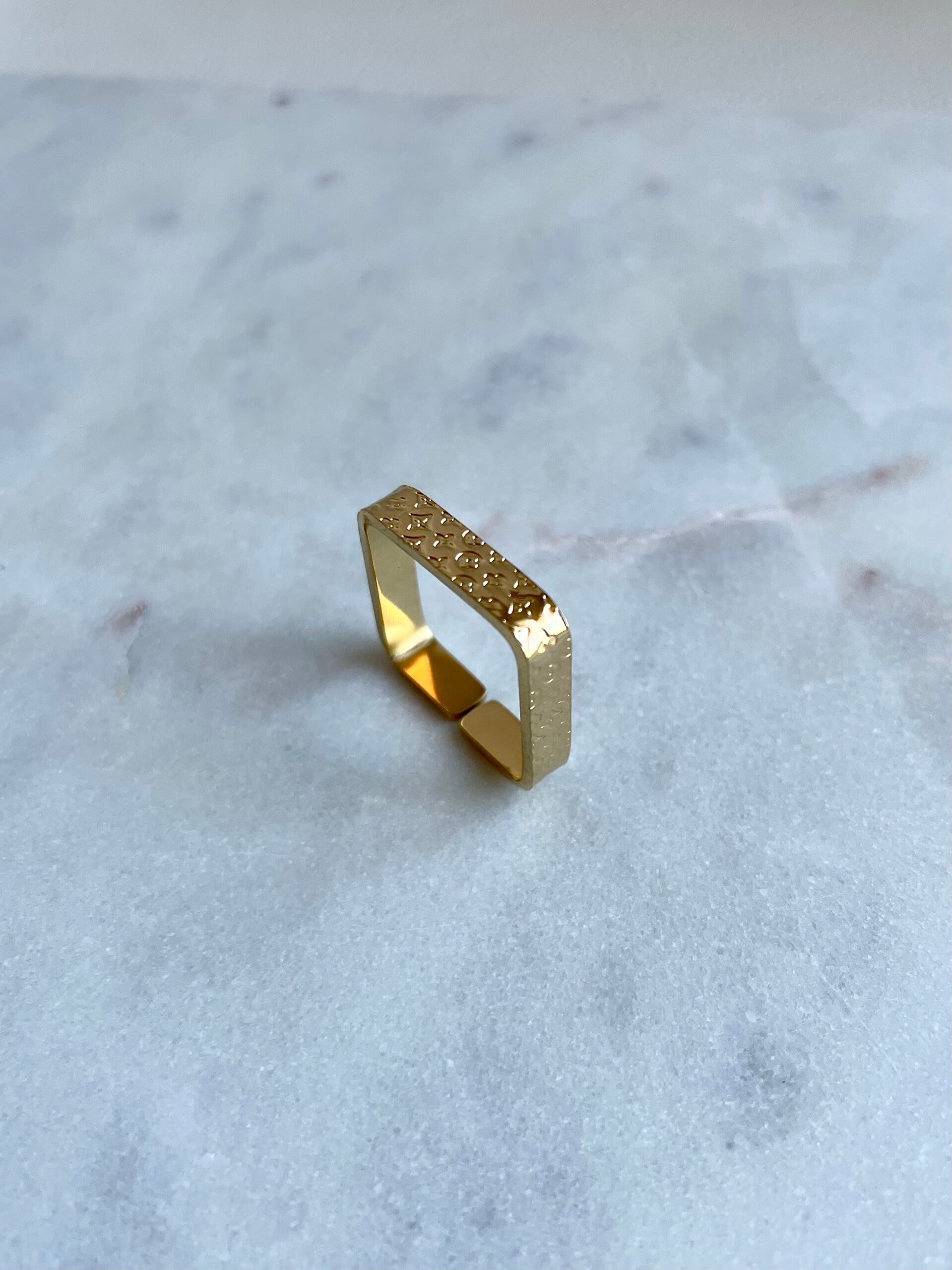 Audacieuse et contemporaine, la bague Mira carrée dorée se distingue par sa forme géométrique et ses gravures en relief. Véritable pièce de caractère, elle apporte une touche architecturale à vos looks. À porter seule pour un effet minimaliste-chic ou en accumulation pour un style plus affirmé.