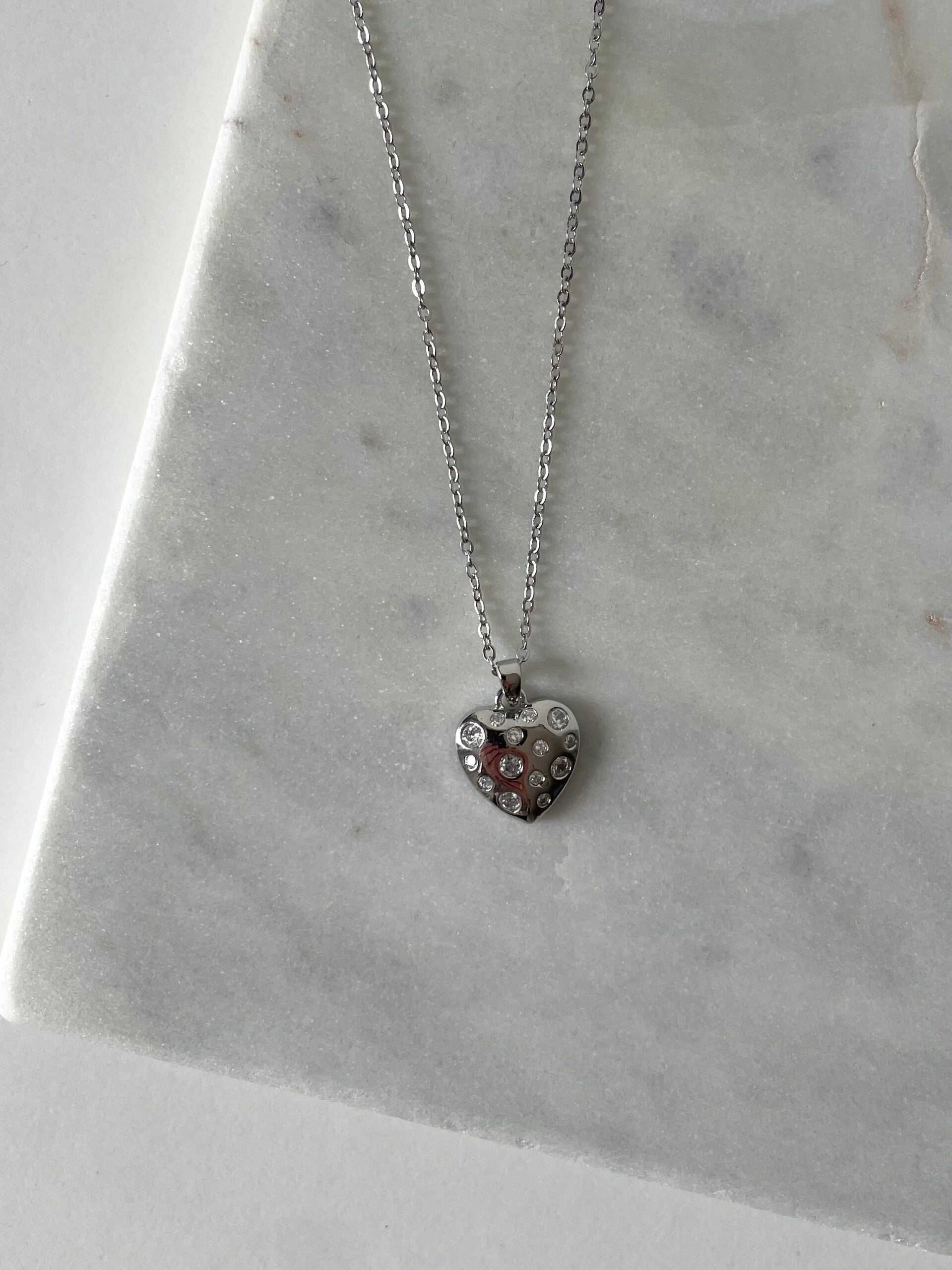 • Pendentif : Forme cœur bombé serti de zirconiums blancs